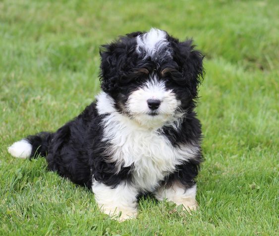 Their color can be anything from pure black, black-and-white, black-and-brown, or tri-color The Bernedoodle is a half mix of a purebred Bernese Mountain Doodle and a purebred Poodle.